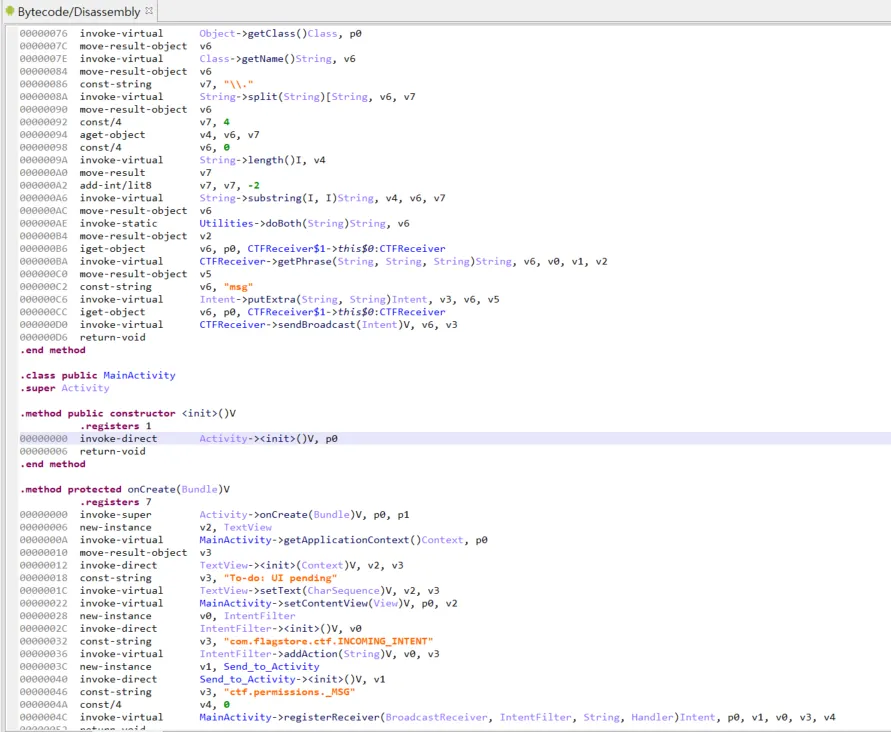 // 만약 com.flagstore.ctf.OUTGOING_INTENT을 수신하고 있다면 바로 확인가능하다.
