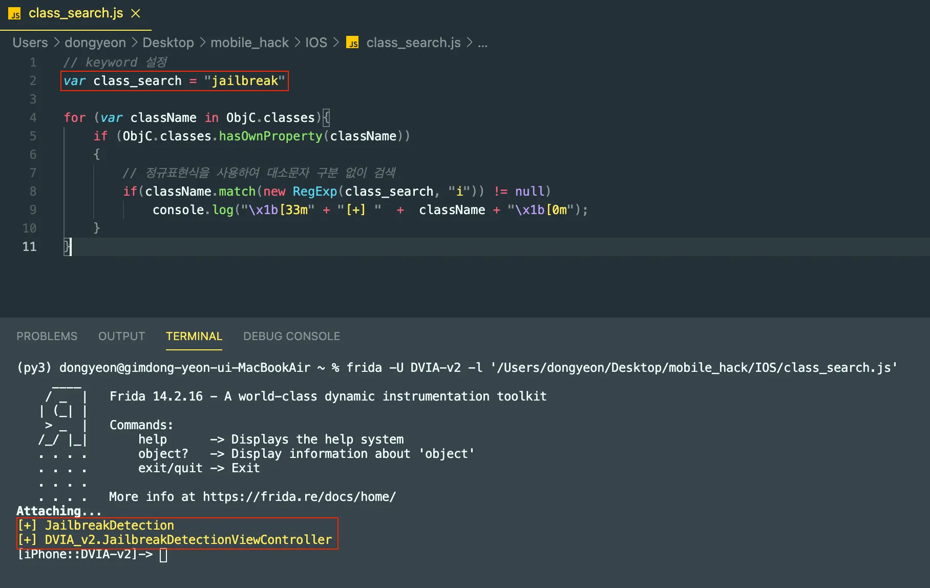사용 예시 : jailbreak 키워드가 포함된 클래스 호출