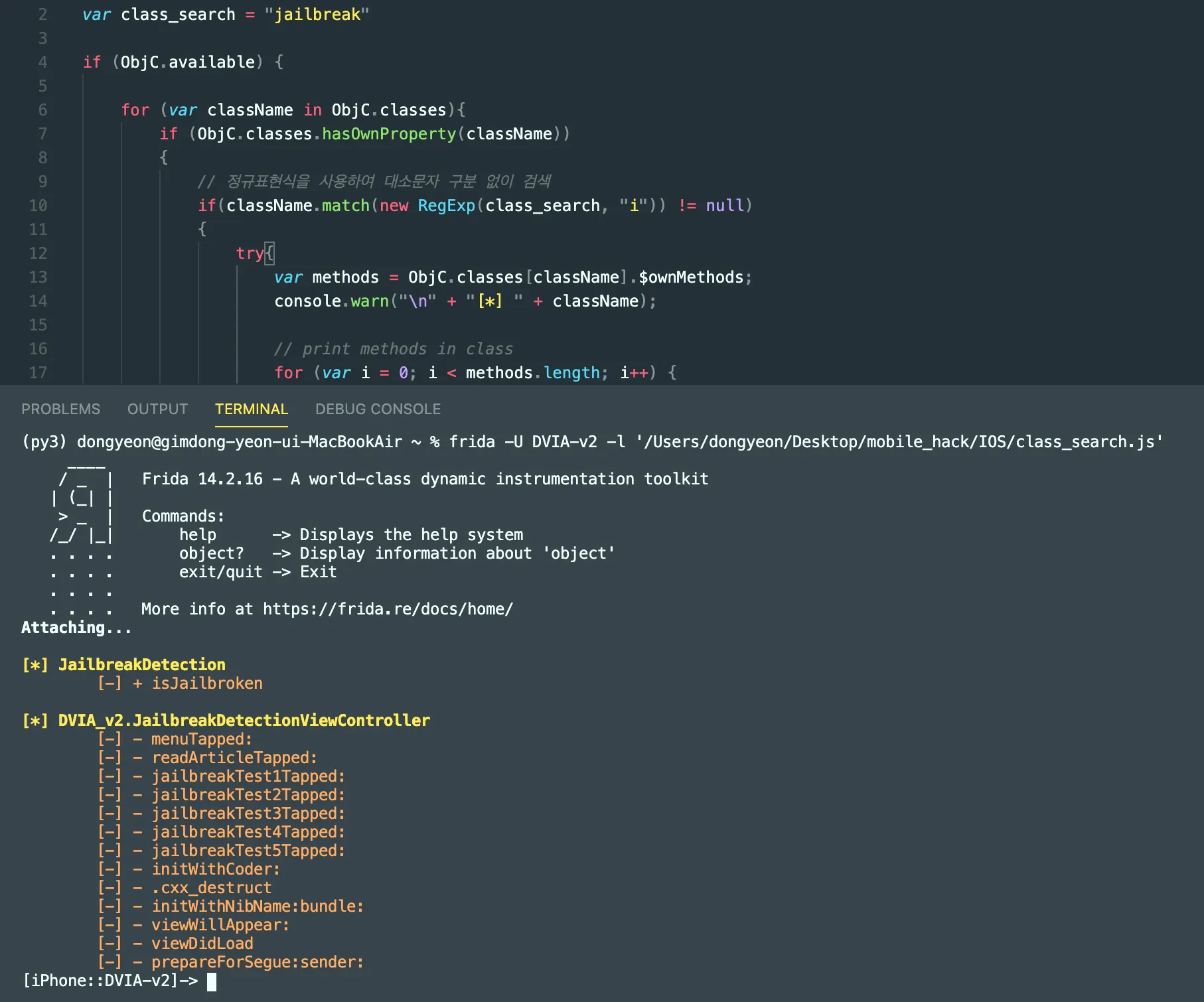 사용 예시 : jailbreak 키워드가 포함된 클래스 호출