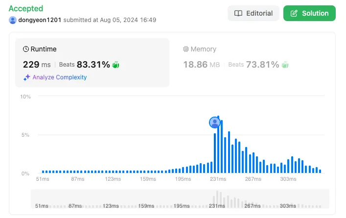 DFS로 풀어보니, 오히려 DFS가 더 빠른 결과를 보여주며 Solved가 가능하였다.