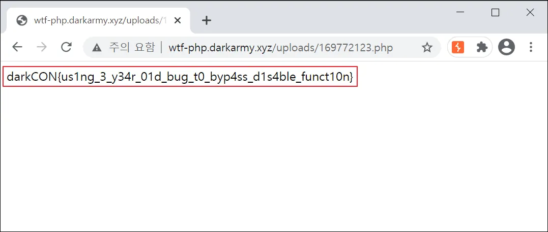 darkCON{us1ng_3_y34r_01d_bug_t0_byp4ss_d1s4ble_funct10n}