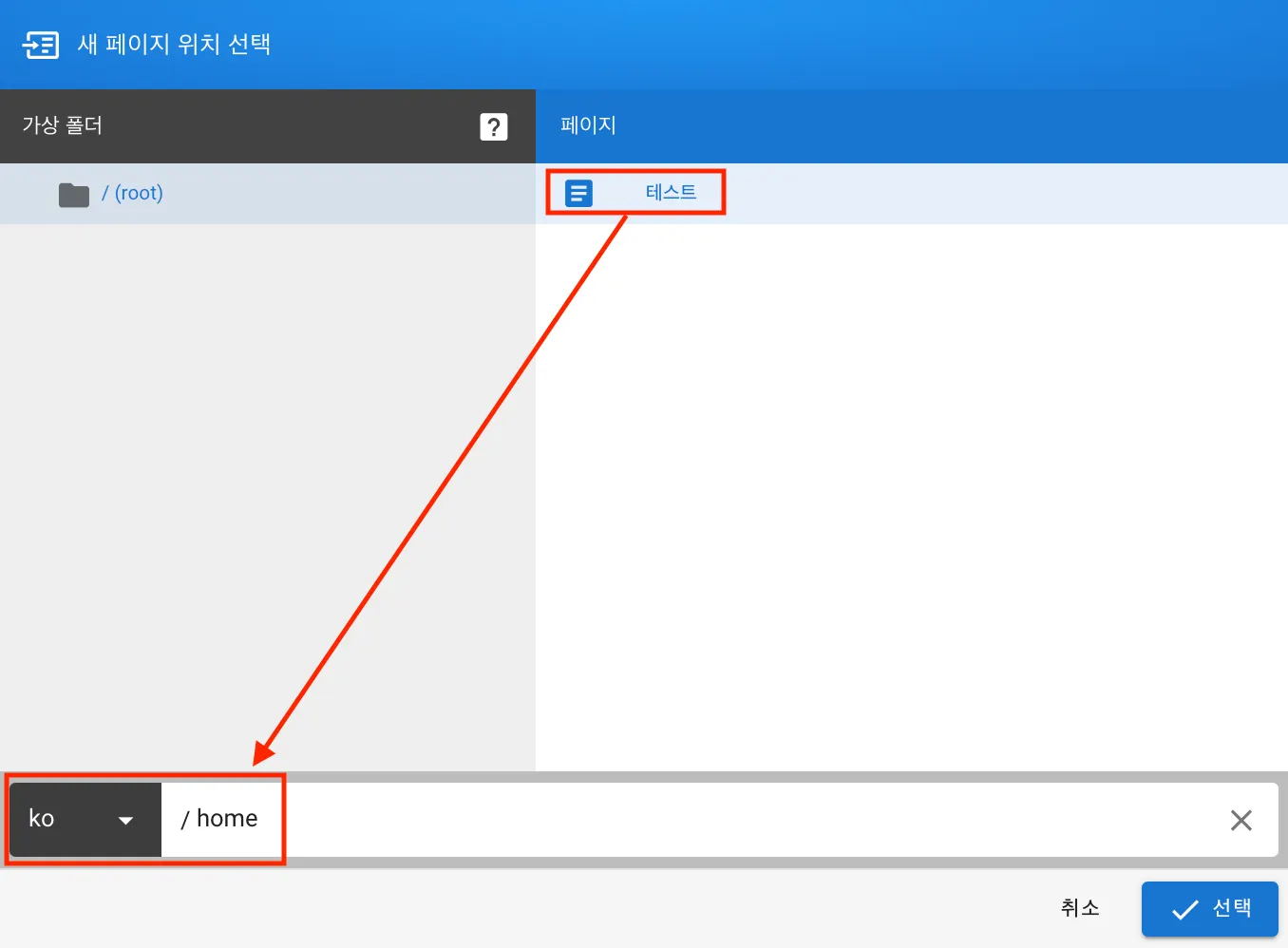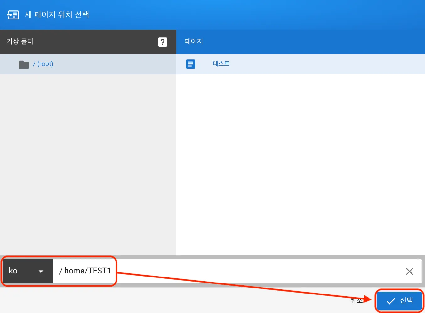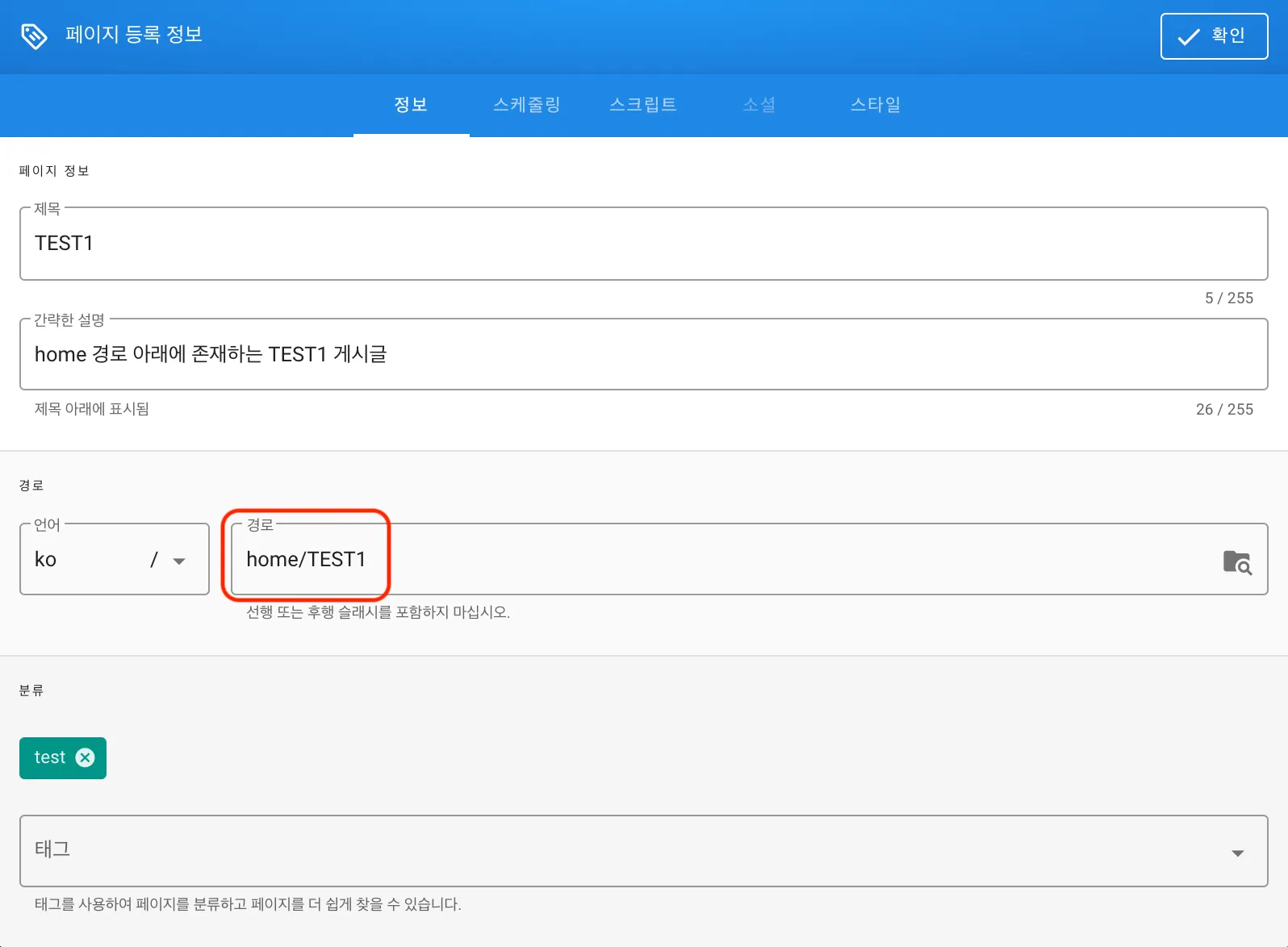 이후 페이지 정보를 입력할 때 경로를 다시 설정 가능하다.