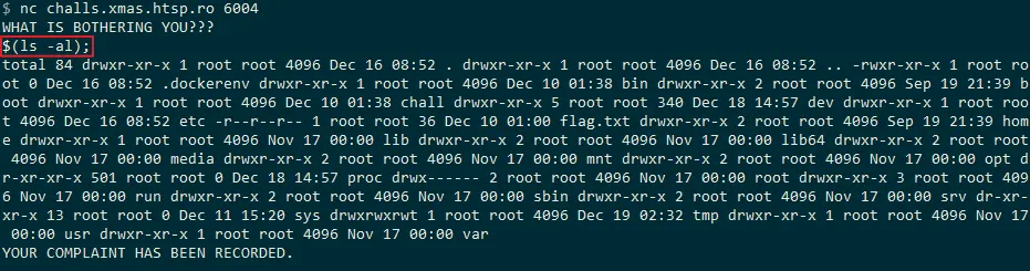 ls -al 명령어를 입력하였지만, YOUR COMPLAINT HAS BEEN RECORDED 라는 문구만 출력되었고, 이 문구도 해석하면 "불만사항이 접수되었습니다." 라는 뜻이다.