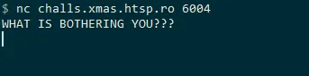 접속 시, WHAT IS BOTHERING YOU??? 라는 문구가 출력된다. 대충 뭐가 당신을 귀찮게 하느냐 라는 뜻인거 같다.