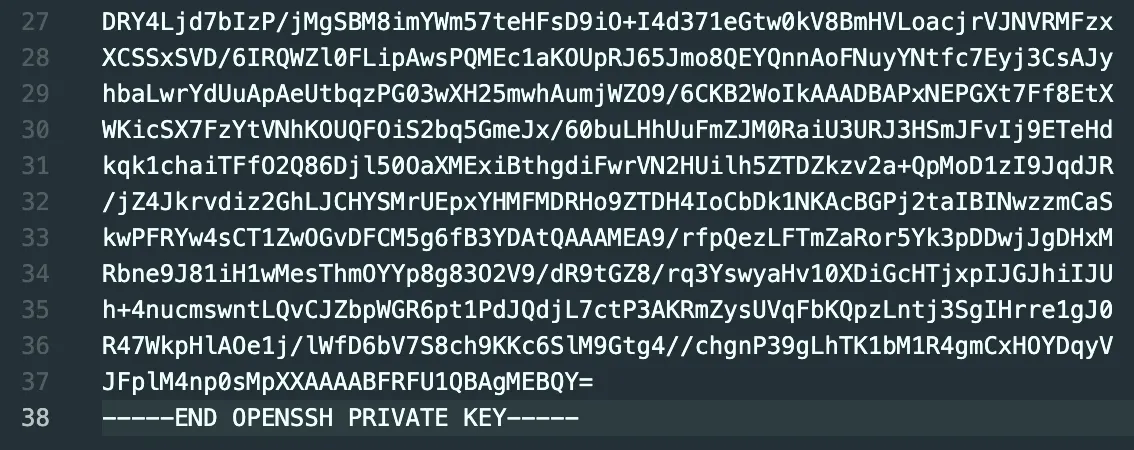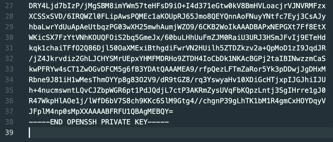 위 결과를 드래그해서 별도의 파일로 만들어주었다. 하지만 이렇게 파일로 받는 방식이 아닌 드래그로 긁어 사설키를 만들때는 주의할 점이 있다.