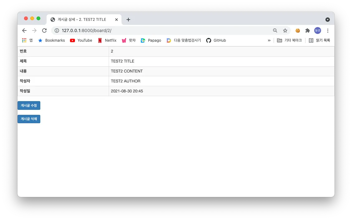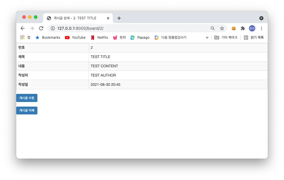 가장 하단에는 게시글 수정과 게시글 삭제 버튼을 생성한다.