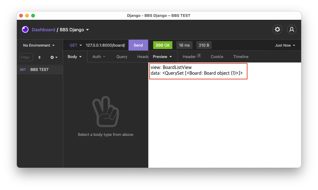 게시글 상세 기능 : 만약 존재하지 않는 <board_id>의 게시글일 경우 404 반환, 존재하는 id라면 해당 게시글의 오브젝트 내용이 나와야한다.