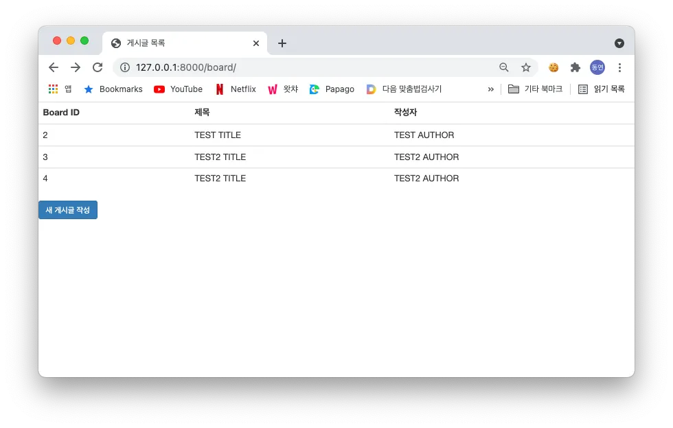 전체 게시글의 목록을 확인할 수 있는 /templates/board_list.html 파일의 소스이다.