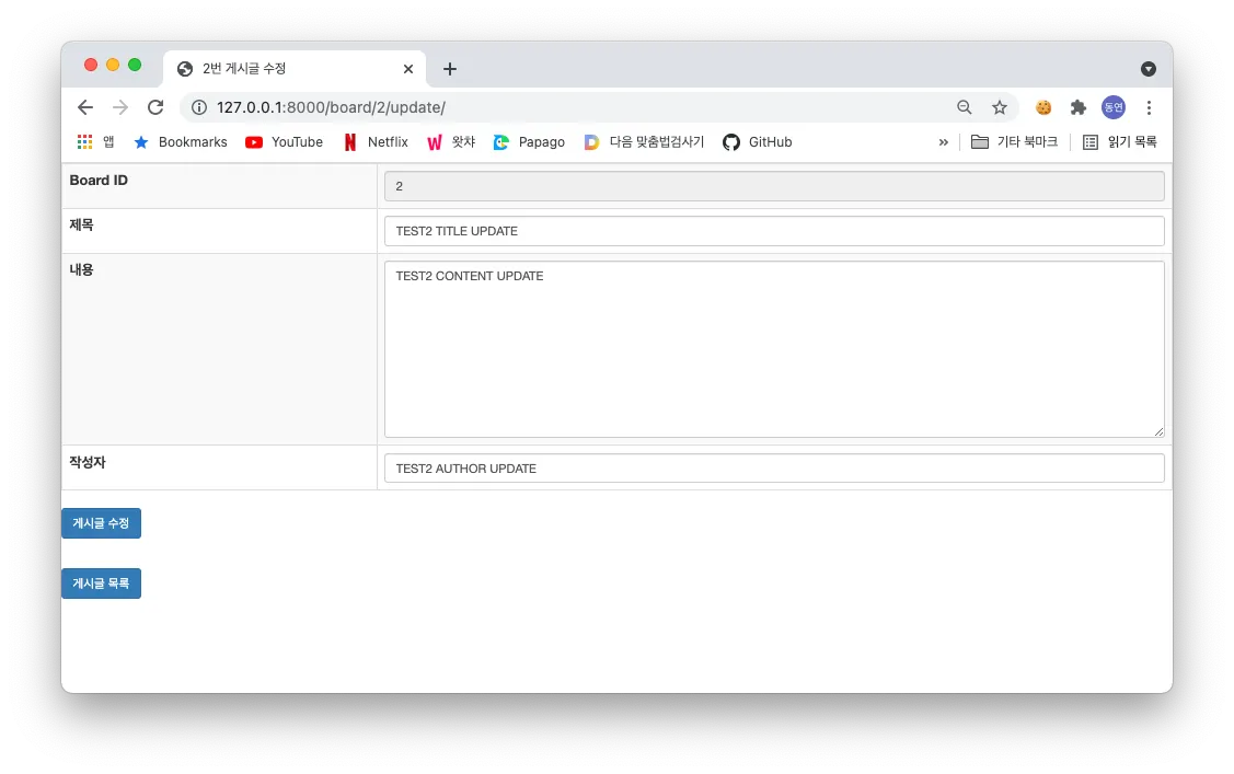 특정 게시글의 내용을 업데이트 할 수 있는 /templates/board_update.html 파일의 소스이다.