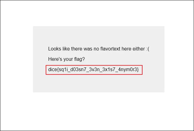 dice{sq1i_d03sn7_3v3n_3x1s7_4nym0r3}