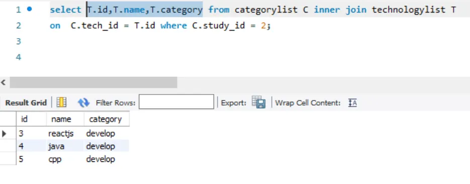 select T.id,T.name,T.category from categorylist C inner join technologylist T