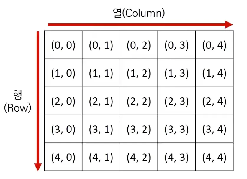 일반적으로 알고리즘의 2차원 공간은 행렬(Matrix)의 의미를 가지고 사용된다.