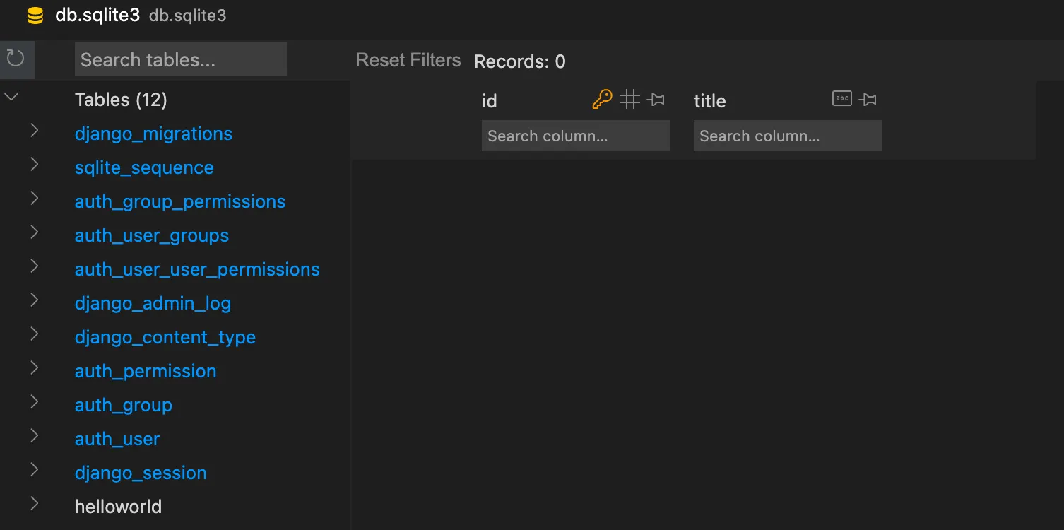 연결된 DB를 확인하면 생성한 모델을 이용한 마이그레이션이 잘 적용된 것을 확인할 수 있다.