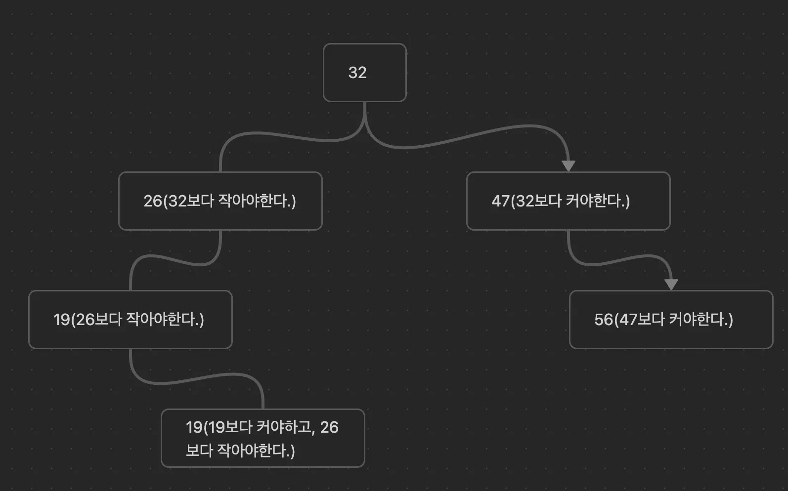 즉, 다음 노드에 올 수 있는 숫자의 최소값과 최대 값을 설정할 수 있는 것이다.